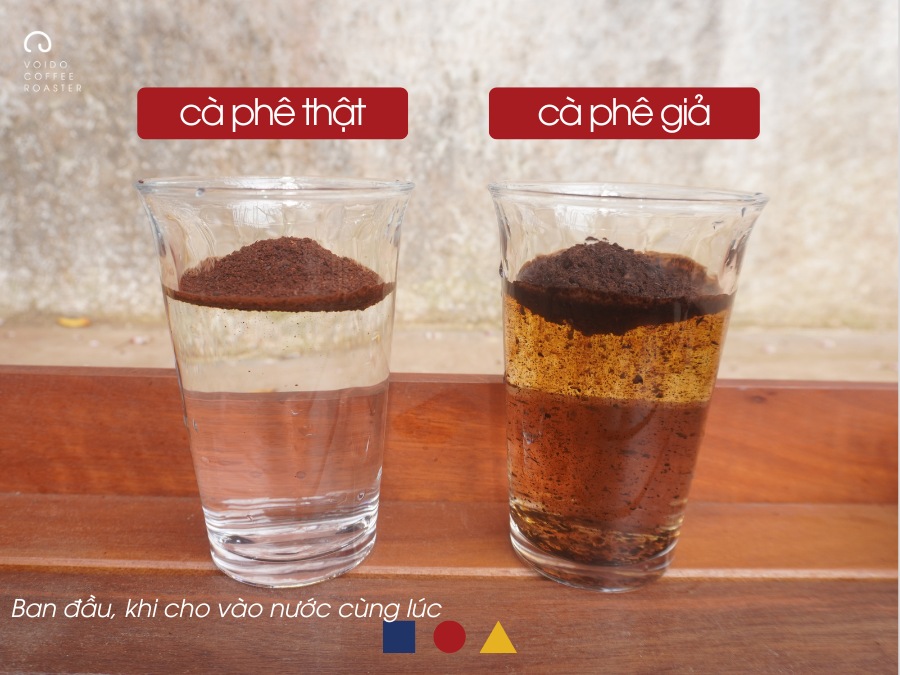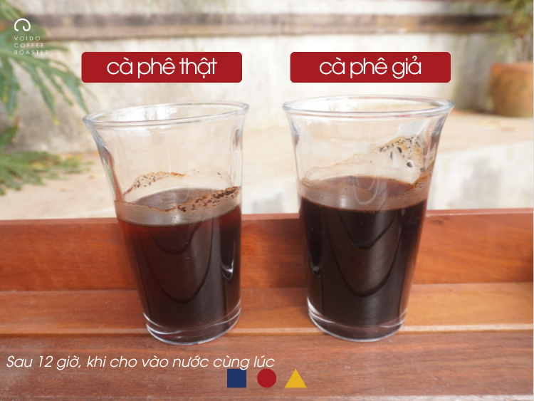 ✅ Thử nghiệm nước lạnh: Cà phê thật nổi lên, cà phê giả chìm xuống đáy ly.
