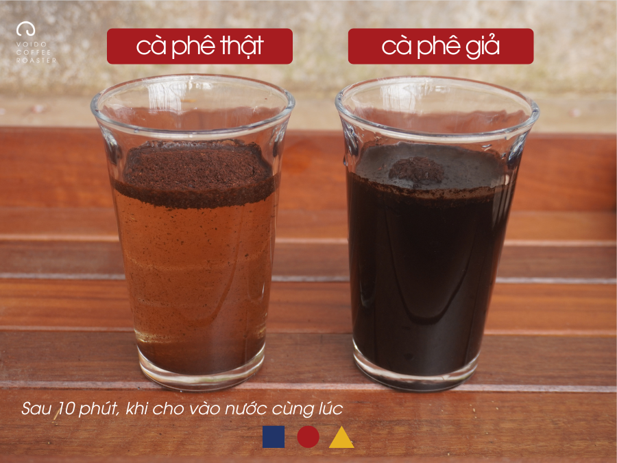 ✅ Độ tan trong nước: Cà phê thật không tan hoàn toàn, bột bắp, đậu nành chìm nhanh.