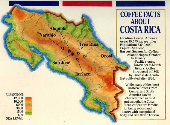 Costa Rica nổi tiếng với cà phê chất lượng cao, chủ yếu là Arabica. Cà phê Costa Rica thường có độ chua vừa phải, hương trái cây, và một chút ngọt ngào.