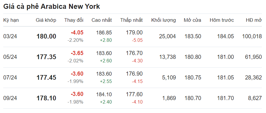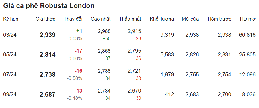 1. Bảng giá cà phê Lâm Đồng hôm nay