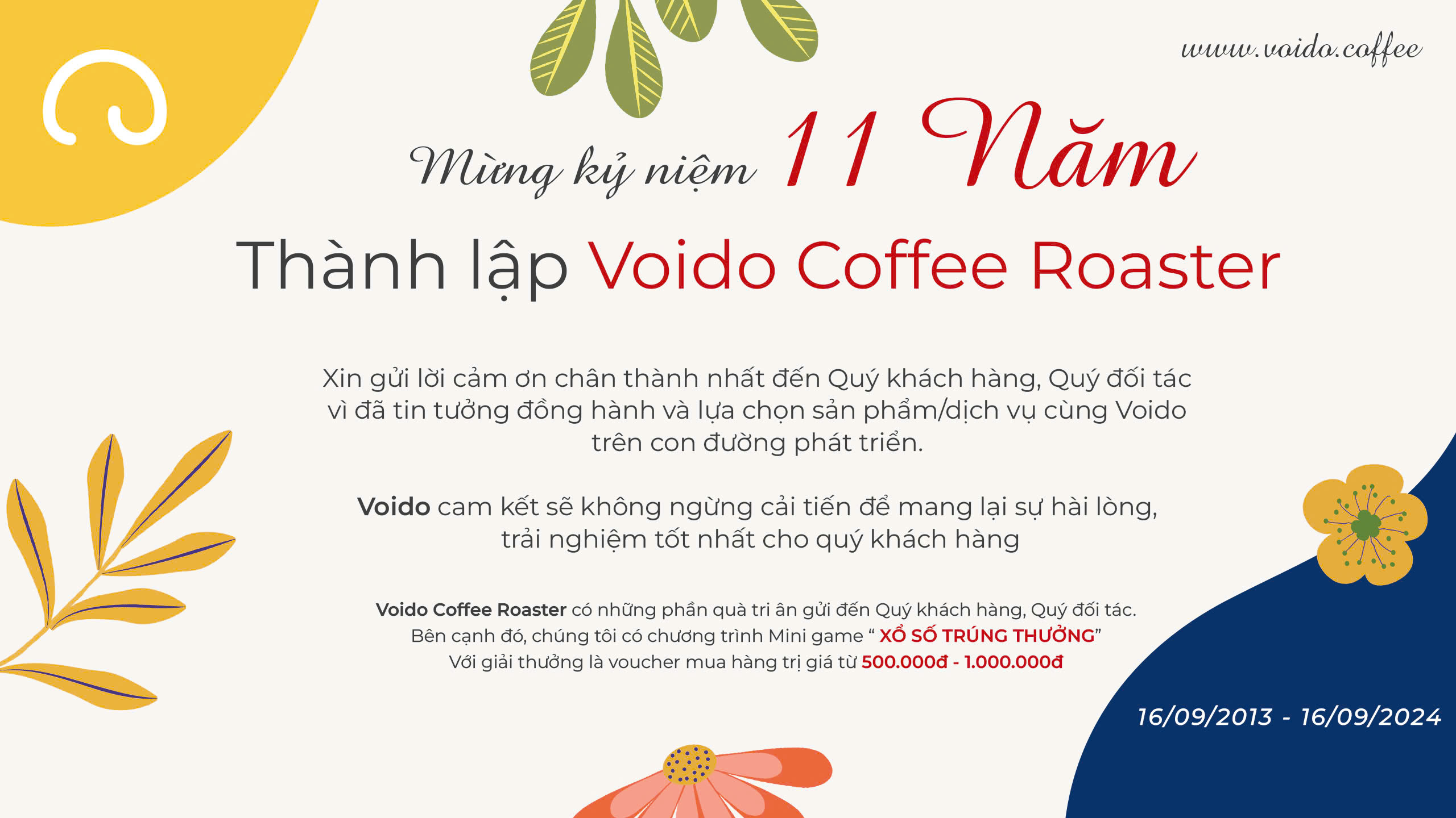MỪNG KỶ NIỆM 11 NĂM THÀNH LẬP VOIDO COFFEE ROASTER