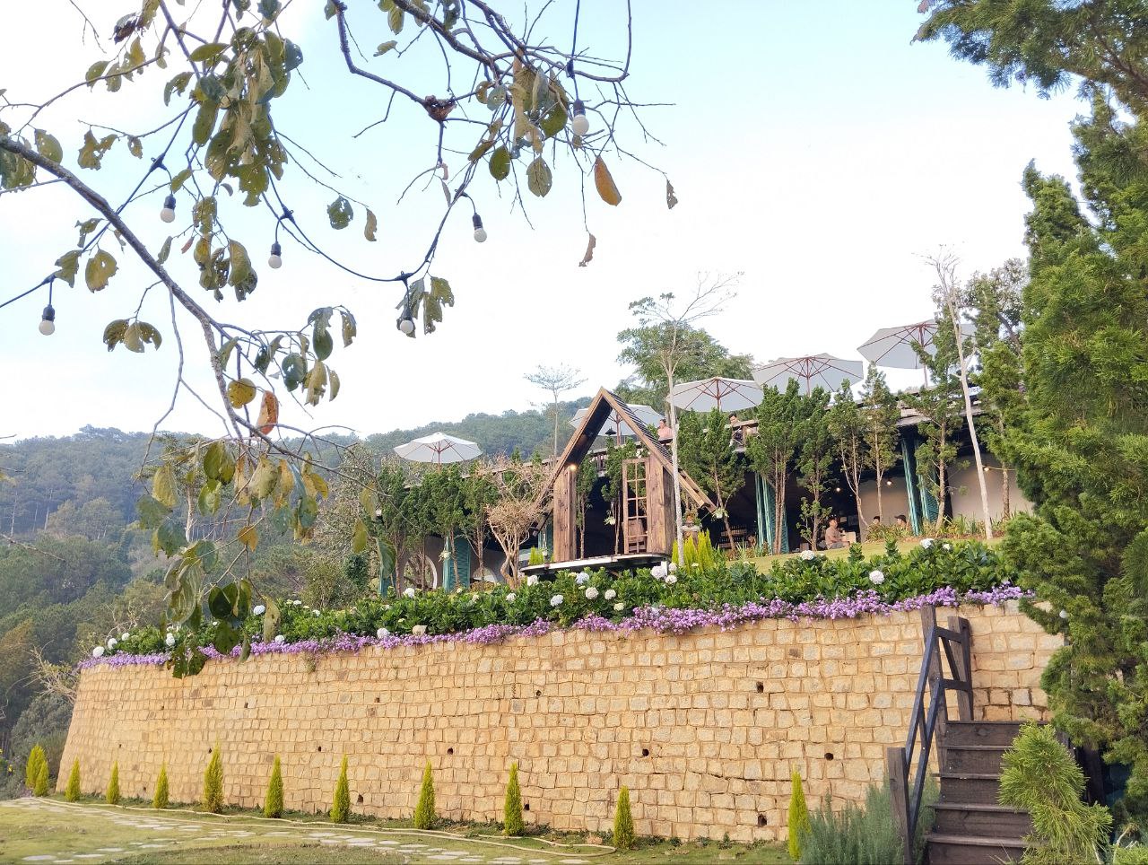 Đây là một quán cafe nằm trên triền đồi có view toàn cảnh núi đồi Đà Lạt. Và không gian quán cũng khá là rộng xây dựng theo kiểu ruộng bật thang. Nên ngồi góc nào bạn cũng có thể ngắm trọn view núi đồi.